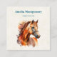 Business cards with a beautiful illustration. A copper brown chestnut coloured horse head and upper body. With watercolor patches behind.