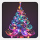 Beautiful Sparkling Neon Christmas Tree Holiday Square Sticker