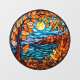 Beautiful round window cling for home or business features AI generated stained glass style Fall scene with Autumn leaves, water and cliffs in the distance. A great addition to your seasonal decor.