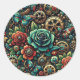 Beautiful Steampunk Themed Gears and Roses Classic Round Sticker