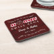 Introducing the Beautiful Stylish Red Custom Couple Names Home Beverage Coaster - a personalised and elegant accessory designed to protect your furniture from moisture, heat, and potential damage caused by cold beverages or hot cups. This coaster features a sophisticated red design with your custom couple names, making it a perfect gift for a loved one or an elegant addition to your own home decor.