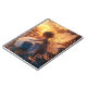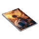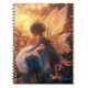 This enchanting image depicts a beautiful, ethereal sun fairy with glowing wings, gently touching a large dandelion. The warm, golden light creates a magical and serene atmosphere.