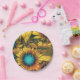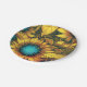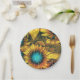 Beautiful Sunflower Yellow Teal Floral Pattern Paper Plate