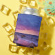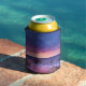 Can cooler with a lovely photograph featuring striking colours of purple, blue and pink at sunset.