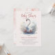 Beautiful Swan Pink Floral Damask Girl Baby Shower Invitation