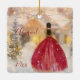 This absolutely charming Sweet Sixteen Christmas holiday ornament features a beautiful African American girl in a sparkling red and gold dress in a winter snow scene lit with fairy lights. Personalise the back with a name and year!