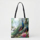 Beautiful Teal Blue Peacock with Flowers Tote Bag