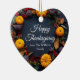 Send fall blessings to your friends and family with this beautiful Happy Thanksgiving ceramic ornament shaped like a heart. Pretty pumpkin photography decorates this holiday gift.
