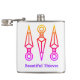 Well made flask, a little better than I had expected. Flask came in clear plastic box which gave it a nice presentation when I took it out of the zazzle packaging. Image is not printed on flask but on sticker. Don't know how this will hold up I haven't used it yet. This would make a Great gift! I plan to purchase more for friends! Cheers. I thought a little brighter than computer. Very crisp, writing wasn't