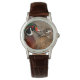 I like the illustrative watch with the lady on it. It is a great reminder that I am blessed and it has a very sturdy leather band. The colors are true and vibrant. Love the color of the Leather also. Very nice.