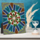 This motif consists of multiple sections, creating a layered and intricate appearance, rich in colours such as blues, greens, reds, and browns.