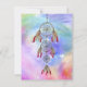 Beautiful trendy whimsical shining effects dream-catcher feathers ribbons, glowing stars nebula over watercolours, pink blue violet, green, white colours image print