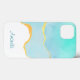 A phone case with a vibrant summery design. Turquoise / aqua green watercolor image with a wavy faux gold border. Elegant and lovely.