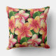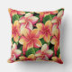 Beautiful chic watercolor boho pink flowers with leaves on black Pillow. Elegant simple design!