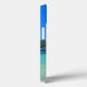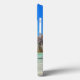 A phone case with a photograph of a turquoise blue ocean beach with big rocks scattered along the coast. Bright and sunny tropical locale.