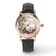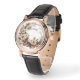 Beautiful watch has a twig wreath with pretty white, ivory flowers, pine branches, greenery and red berries. Add your name or monogram to personalise.