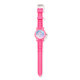 A watch with an image of a unicorn with big blue eyes, pink wings and a rainbow mane and tail. Kawaii cute.
