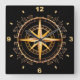 Beautiful Unique Gold & Black Compass Antique ~ Square Wall Clock