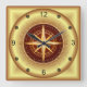 Beautiful Unique Gold & Maroon Compass ~ Square Wall Clock