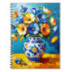 Beautiful notepad with a beautiful impasto style ai illustration of blue and orange flowers in a fancy vase.
