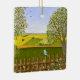 An ornament with a beautiful image of a nature scene: A bird sitting on a weathered fence, wildflowers growing around the fence, a farmer on a tractor, working his land, trees with leaves, and farmland with various colours. The image and text can be customised. You also have the option to delete the text. Original artwork by W.B.