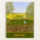 A planner with a beautiful nature scene: A bird sitting on a weathered fence, wildflowers growing around the fence, a farmer on a tractor, working his land, trees with leaves, and farmland with various colours. The background, image and text can be personalised. Original artwork by W.B.