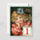 Beautiful Vintage Girl & Kitten copy New Year Postcard
