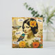 Pretty vintage woman with birds and orange and yellow flowers. Inspirational words beauty, hope, inspire and love.