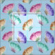 Favric with a beautiful pattern. Watercolor butterflies, painted in pastel colours including pink, purple, blue, yellow and green. Light blue background.