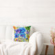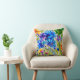 Beautiful watercolor filter over inks. Reversible pillow with different crop of Floral garden art in rich blues, purples and spring green.