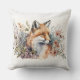 Beautiful Watercolor Painting Red Fox In Flowers Cushion
