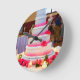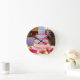 I ordered a small size of Tea Time Green & White Kitchen clock. It's just so cute and matches my kitchen decor!! The picture quality is better than I thought considering most of online orders do not meet buyers' expectations. It weighs only less than a pound. Excellent printing. You are not going to be embarrassed when you give this to your family and friends for a gift. I have failed many times on online orders for poor quality once i received them, but this one surprised me!!