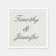 This beautiful wedding damask napkins features a silver and white pattern. With the couple's name written in grey cursive font, personalise yours today!