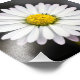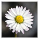 Photograph of a simple and elegant white and yellow daisy. The dark grey, nearly black, colour emphasizes the natural colours of the flower.