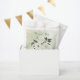 Beautiful botanical wedding favour bag featuring romantic white flowers with green leaves.