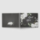 beautiful white flowers with some green leaves black guest book.