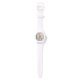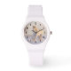 A watch with a photograph of a gorgeous white horse. Running through a snow covered field. Majestic and beautiful.