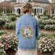 Beautiful White Horse Gold Floral Wreath Denim Jacket