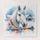 Beautiful White Horse on Farm Christmas Jigsaw Puzzle