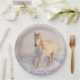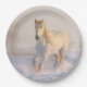 Paper plates with a photograph of a gorgeous white horse. Running through a snow covered field. Majestic and beautiful.