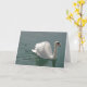 A pretty, white, proud swan swimming in grey water and colly reflecting. The greeting card is customisable with your birthday or Mother's Day wishes.