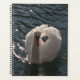 Beautiful, proud white swan and pretty light reflections in dark water.