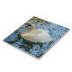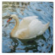 A photograph of a beautiful white swan printed on a ceramic tile.
