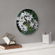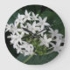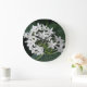 This awesome clock features a detailed photograph of a bunch of beautiful bright white tropical flowers. These pretty flowers are found in tropical countries. The photo was taken using macro photography for a detailed result.