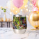 Super pretty and makes a great gift! A wine tumbler with harvest grapes on a fall vineyard. This is stainless steel but looks great on white too. A wonder wine glass.