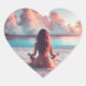 Beautiful Woman Meditating on Beach Blank Heart Sticker