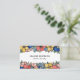 Colourful floral business card with rows of flowers in coral, blush, blue, and yellow framing your name and profession written in a charming serif font. Eye catching vibrant business card with lots of flowers for any profession, like home styling, interior design, beauty, and more. Add your contact info to the back in black text against light yellow with cute business card icons for address, phone number, social media and more.