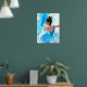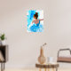 Poster in a watercolor portrait of a beautiful young ballerina / dancer in blue
