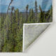 A typical summer scene in the Yukon and other northern areas. Customisable text reading, "The Yukon" also appears. Flat, marshy terrain dominated by black spruce. Clouds cling to a distant mountain range. A beautiful, fragile land.