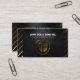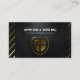 Beautifull Black and Gold Security icon Business Card. Security matte black steel business cards you can customise with classy design that includes a black metallic like background with gold shield logo element and text layout you can customise. Best business cards for themes related to law enforcement, home security, computer security, or private detective.